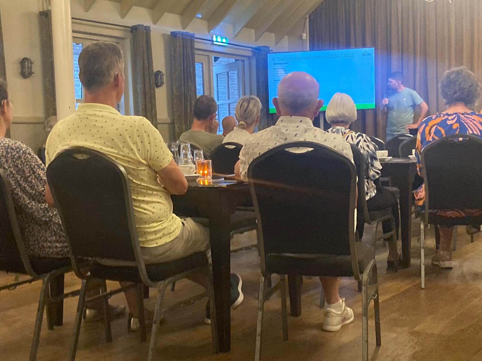 De avond werd bezocht door 25 leden. Na de uiteenzetting van de activiteiten van het afgelopen jaar en decharge van het bestuur van het gevoerde beleid werd Roel herkozen als bestuurslid. Na de vergadering werd door Frans Pijenenborg de nieuwe Stichting Geef om Beekse Kernen gepresenteerd. De avond werd afgesloten door uitleg over de akoestiek aanpassingen in het café. Dit werd getest door met zijn allen een biertje te drinken in het café.